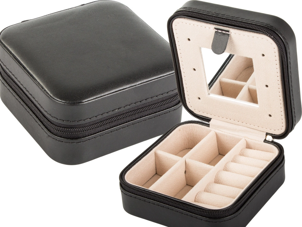 - Pārskatāma organizācija: nodalījumi sīkumiem, vieta gredzeniem, kabata un āķīši ķēdītēm.