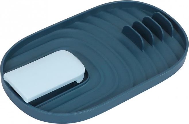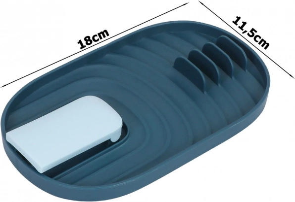 Turku zila krāsa un moderns dizains padara šo turētāju par stilīgu un funkcionālu jūsu virtuves akcentu.
