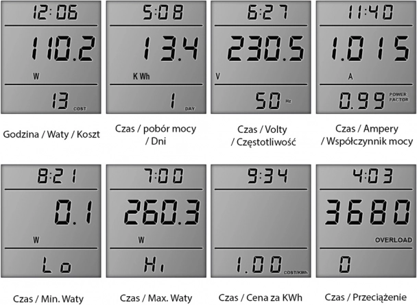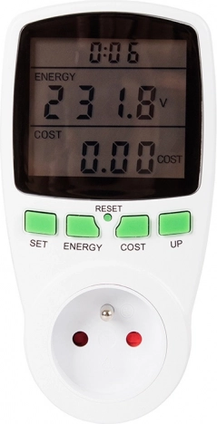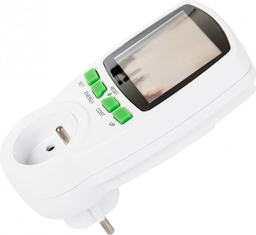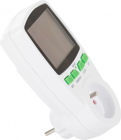 Šis digitālais vattmetrs nodrošina precīzus enerģijas patēriņa un izmaksu mērījumus. Liels un pārskatāms displejs ļauj ar vienu acu uzmetienu redzēt visus svarīgos parametrus, piemēram, pašreizējo spriegumu, frekvenci vai strāvas patēriņu.