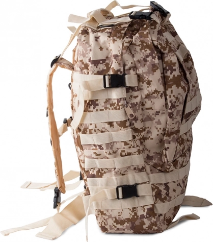 Pateicoties MOLLE sistēmai, regulējamai krūšu un jostas siksnai, mugursoma ir ideāla garākiem pārgājieniem.