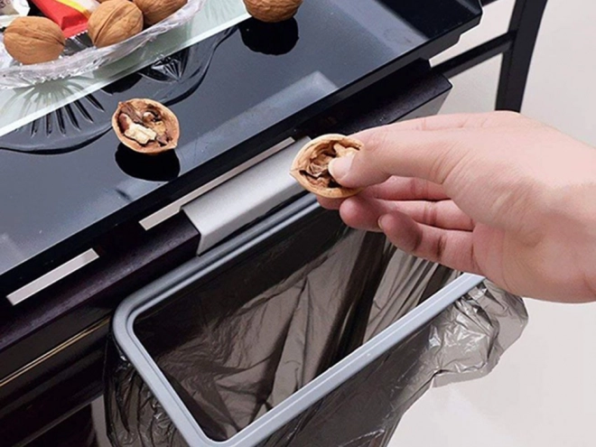 Uzturiet kārtību bez piepūles. Piekaramo turētāju atliek uzlikt uz skapīša durvju vai atvilktnes malas (līdz 20 mm platumam), un jūs uzreiz varēsiet ērti izmest pārpalikumus un iepakojumus. Hermētisks vāks novērš smaku izplatīšanos un palīdz uzturēt virtuvi higiēnisku.