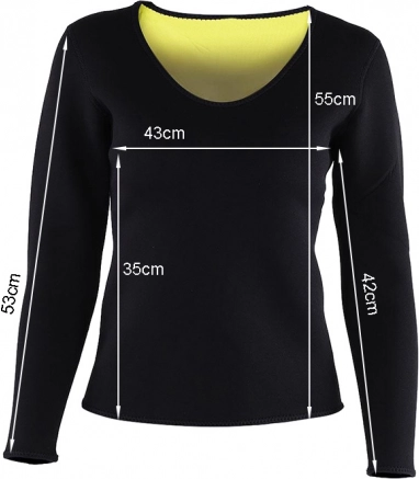 Sieviešu neoprēna fitnesa krekls ar garām piedurknēm palīdz treniņu laikā paaugstināt ķermeņa temperatūru un līdz ar to arī svīšanu intensīvākam treniņam. Tas ir ērts, ātri žūstošs, elpojošs un izceļ auguma līnijas. Ārējais slānis novada mitrumu, lai saglabātu sausumu, kamēr iekšējais slānis veicina slaidinošu efektu un pastiprinātu stingrības sajūtu.