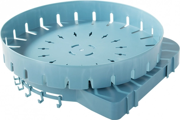 Ar darba izmēriem — 26 cm diametrā un kopējo augstumu 7 cm — šis organizators piedāvā mūsdienīgu glabāšanas risinājumu un ir pieejams divās krāsās: zilā un dzeltenā.