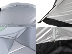 Izbaudiet ērtu nakšņošanu dabā ar telti, kas apvieno zemu svaru, vienkāršu uzstādīšanu un mitrumnoturību. Vienkāršas (vienas kārtas) konstrukcijas stiklašķiedras rāmis nodrošina stabilitāti, savukārt sudrabota pārklājuma slānis labāk saglabā siltumu iekšpusē. Ieeja ar moskītu tīklu nodrošina svaiga gaisa plūsmu bez odiem.