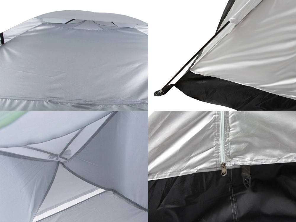 Augšējā ventilācijas atvere lietus laikā ir aizsedzama. Pastiprinātais grīdas pārklājums pasargā no zemes mitruma, un telti ir viegli nostiprināt ar enkuriem (kolīšiem). Pēc salocīšanas tā aizņem minimumu vietas, un, pateicoties pārnēsājamai somai ar rokturi, to ir ērti nest.