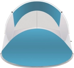 Izbaudiet ērtu atpūtu ēnā jebkur. Pašizplešamā TRIZAND pludmales telts ir stabila, viegla (tikai 0,92 kg) un daļēji atvērtā kupola dēļ nodrošina pietiekami daudz vietas 1–2 personām. Elpojošie moskītu tīkla paneļi pasargā no kukaiņiem un uztur patīkamu klimatu iekšpusē.