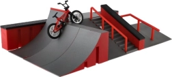 - Pilns komplekts: rampa, kāpnes ar reila stieni, pirkstu skrituļdēlis un mini BMX ritenis