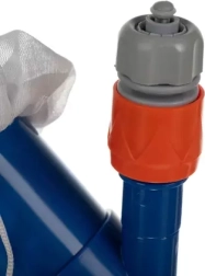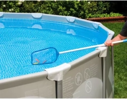Ar šo universālo komplektu bez piepūles iztīrīsiet ūdens virsmu, sienas un baseina dibenu. Putekļsūcējs pievienojas standarta šļūtenei ar ātrspraudni – ūdens spiediens iesūc netīrumus auduma maisā, bet tīrs ūdens atgriežas atpakaļ. Siets savāc lapas, kukaiņus un citus peldošus netīrumus.