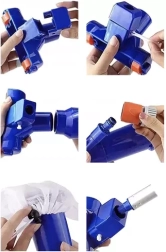 Putekļsūcēju vienkārši pievienojat dārza šļūtenei ar ātrspraudni. Ūdens spiediens iesūc netīrumus maisā, tāpēc tīrīšana ir ātra un bez sarežģītas apkopšanas.