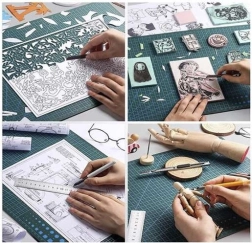 Atklājiet uzticamu palīgu precīziem un tīriem griezumiem. Šī pašatjaunojošā A3 griešanas pamatne ir ar daudzslāņu, elastīgu struktūru, kas samazina asmens iespiešanos un pēc griezuma virsma atgriežas sākotnējā stāvoklī. Tā saudzē asmeņus, aizsargā galdu un saglabā taisnumu pat biežas lietošanas laikā.