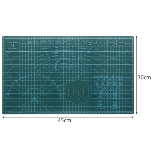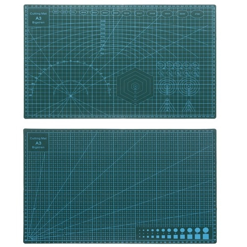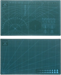 Praktiska pašatjaunojoša A3 formāta griešanas pamatne precīzai un drošai papīra, kartona, plēvju vai audumu griešanai. Pateicoties daudzslāņu uzbūvei, griezuma pēdas pašas aizveras, nodrošinot ilgstošu kalpošanu. Abpusējs apdruks ar mērierīcēm un palīglīnijām atvieglo darbu, bet tās pretslīdes virsma nodrošina stabilitāti griešanas laikā. Ideāli piemērota modelētājiem, dizaineriem, entuziastiem un birojam.