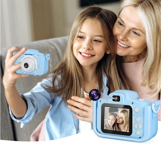 Digitālā bērnu fotokamera ar kaķīti piedāvā nefiltrētu prieku no neaizmirstamu mirkļu iemūžināšanas, pateicoties vienkāršai vadībai un izklaidējošām funkcijām. Bērni var fotografēt savus tuvākos, draugus un iemīļotos mājdzīvniekus. Šis produkts ir ne tikai izklaidējošs, bet arī izglītojošs, jo veicina iztēles un radošās domāšanas attīstību.